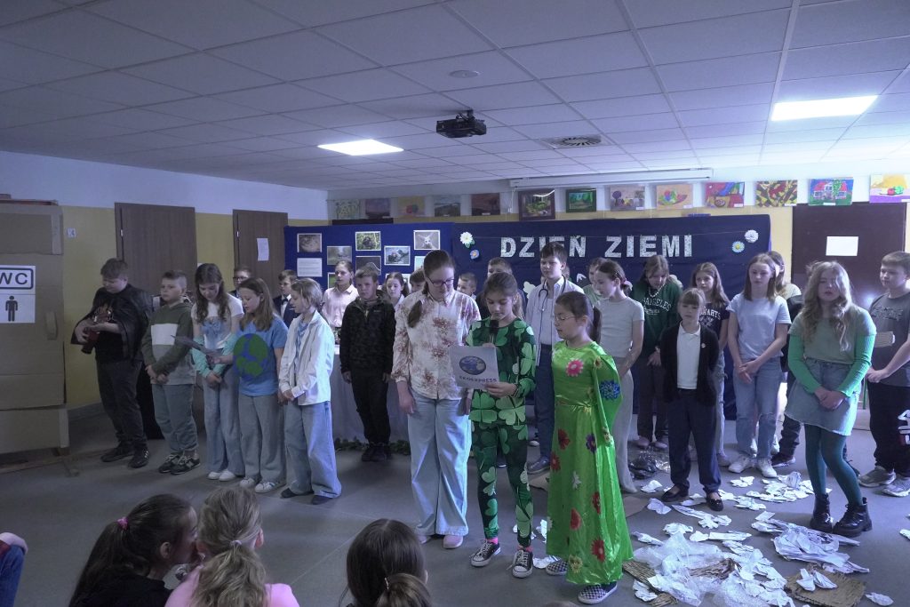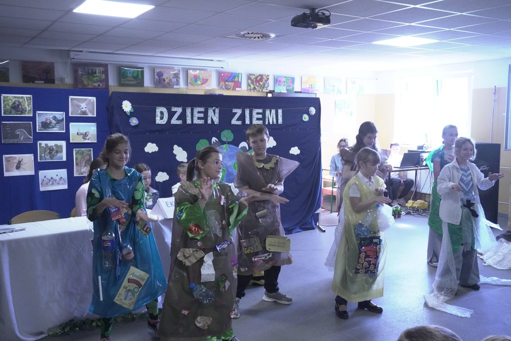 Dzień Ziemi Posted on 15 maja, 2025 by admin W naszej szkole obchodziliśmy Dzień Ziemi. Z tej okazji uczniowie przygotowali wystawy: eko-modę, eko-obrazy, recyklingowe figury oraz gry o tematyce ekologicznej. Dodatkowo uczniowie klas czwartych wraz z wychowawcami przygotowali kolorowy apel.