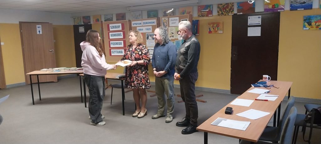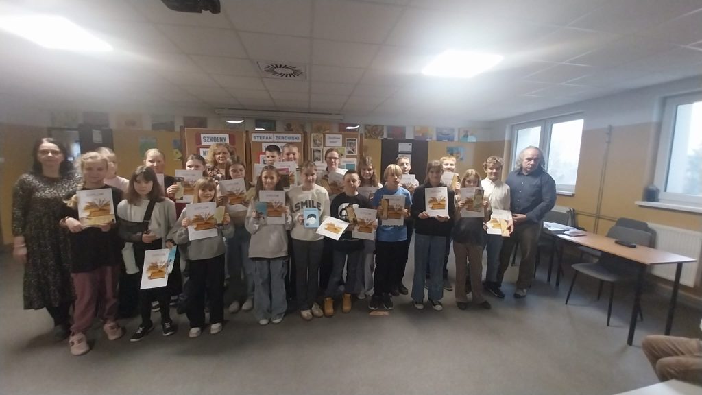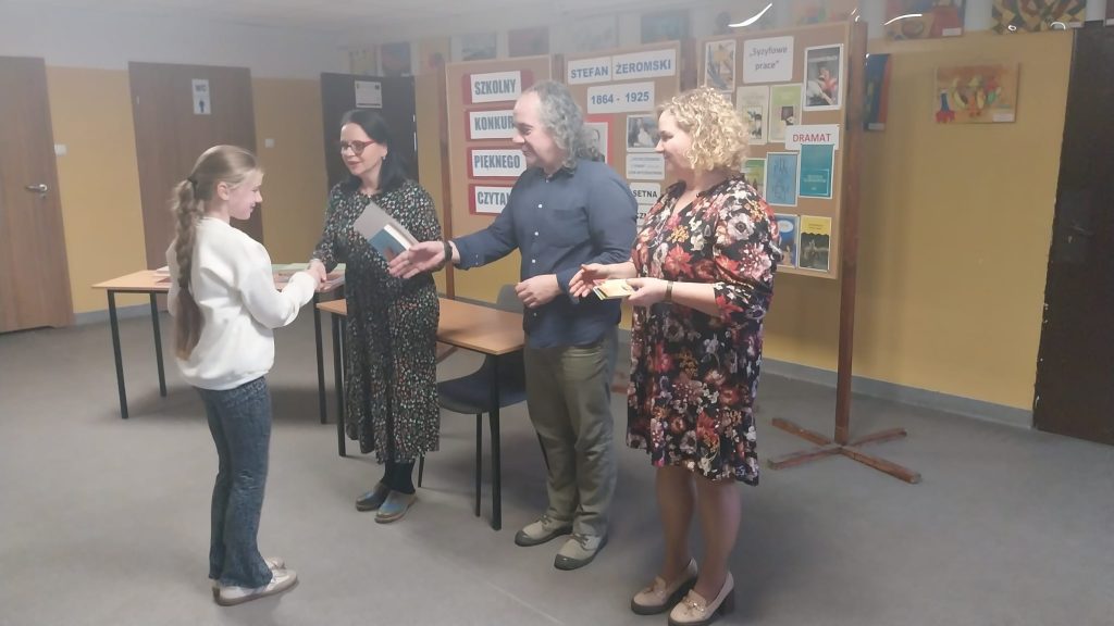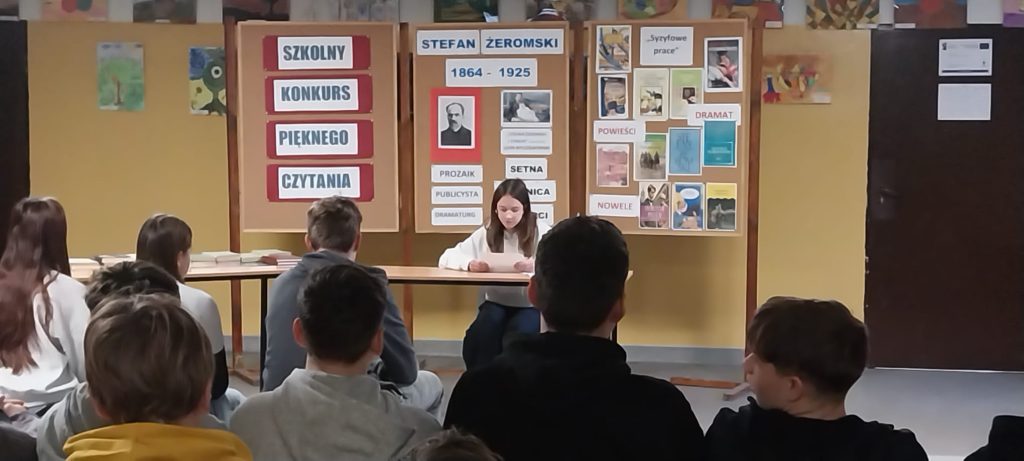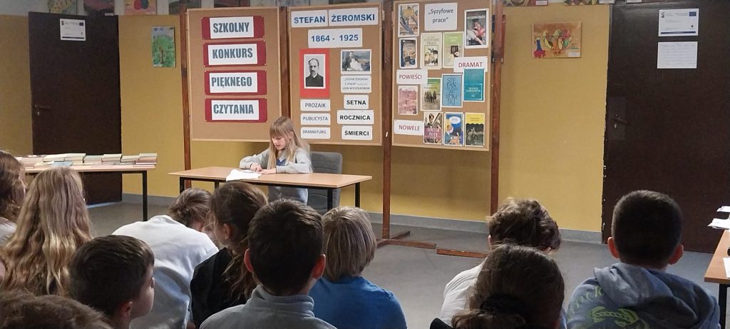 W środę 26 listopada odbył się w naszej szkole Szkolny Konkurs Pięknego Czytania. Przeprowadzono go w dwóch kategoriach wiekowych. Uczniowie klas VII – VIII czytali fragmenty „Syzyfowych prac”. Wybór lektury był nieprzypadkowy. Rok 2025 jest rokiem Stefana Żeromskiego, a 20 listopada minęła setna rocznica śmierci tego wybitnego pisarza. Tematyka utworu wpisuje się też w patriotyczny nastrój listopada. Uczestnicy konkursu z klas IV – VI zinterpretowali zaś fragmenty różnych powieści, inspirując słuchaczy do sięgnięcia m. in. po „Przygody kota Filemona”, czy „W osiemdziesiąt dni dookoła świata”. Jury w składzie: p.Małgorzata Wilczyńska, p.Jarosław Sułkowski oraz p.Urszula Gorczyńska (kl. IV- VI) i p. Krzysztof Strąk (kl. VII-VIII) wyłoniło następujących laureatów konkursu w kategorii klas VII-VII: Julia Dybiona- I miejsce, Lena Dąbrowska -II miejsce, Oliwia Akbar -III miejsce, Blanka Adamska – wyróżnienie, a w kategorii klas IV – VI: Anna Ściesińska -I miejsce, Patrycja Litewka -II miejsce, Marta Łaszkowska – III miejsce, Emilia Klewinowska – wyróżnienie.